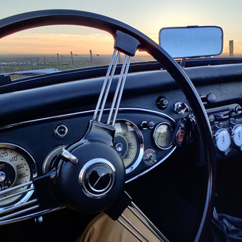 This 1959 Austin Healey 100/6 is a true collector's piece – the rare BN6 two-seater model, of which only 4150 were ever built. Finished in timeless British Racing Green with a classic black leather interior, it embodies the spirit of British motoring heritage. A full frame-off restoration was completed in 1991, preserving its character while ensuring lasting quality. Elegant, pure, and unmistakably authentic – this Healey stands as a tribute to a golden era of sports cars.